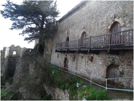 Het kasteel was oorspronkelijk een klooster, maar door de ligging op de bergketen was het ideaal voor verdediging tegen Arabische piraten.