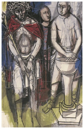 Veel beter is het, gegeven de omstandigheden , om geregeld de zaak opnieuw te bekijken en het noodzakelijke onderhoud te plegen. We hebben ook gediscussieerd over het feit of de glasbrokken rondom de tableaus terug zouden moeten komen, omdat ze tijdens het stucwerk allemaal verwijderd zijn. Na overleg met alle betrokken partijen is besloten om ze terug te brengen en aan te vullen conform het eerste ontwerp zoals uit de foto's met Charles Eijck blijkt. De achterwand is niet meer teruggebracht in de donker groene kleur maar in de kleur van de rest van de wanden van de kerk. Daardoor komen de tableaus en brokken meer tot hun recht.