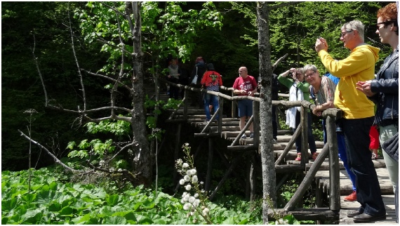 Onze gids Sonja gaf tekst en uitleg tijdens de wandeling door het Nationale Park Plitvice Meren.