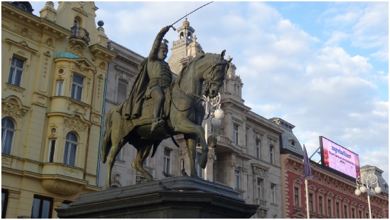 Jelacicplein in Zagreb met standbeeld van Ban Jelacic