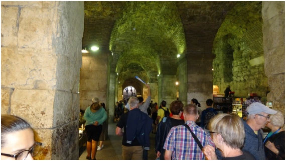 De catacomben van de het oude paleis van Diocletianus. Vroeger was dit het domein van de oude keizer zelf. Tegenwoordig zijn de gewelven een bonte markt van tientallen sieradenstalletjes.
