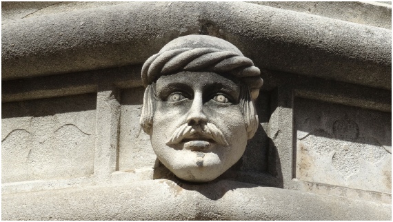 Een klein aantal van de 72 gezichten aan de buitenkant van de Jacobuskathedraal in Sibinek.