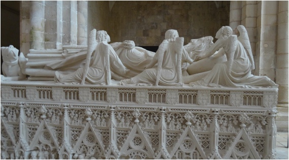 De tombes van het beroemdste liefdespaar, koning Pedro en zijn minnares Inés.