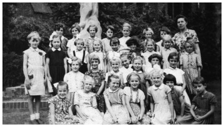 S12. Kleuterschool Neerbeek, meisjes; o.a.: Elly Philips, Mia Philips, Mia Vranken Trees Janssen en Miep van Mulken; 1950