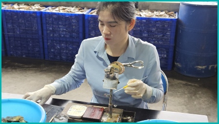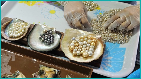 Dit omvatte het sorteren van oesters, het implanteren van een klein deeltje om de parelvorming op gang te brengen en het terugplaatsen in het water om de parel verder te laten groeien.