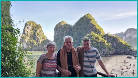 In Hanoi stond onze reisleidster Irma, de gids Din, chauffeur Hoang en de bus boy Cuong op ons te wachten.