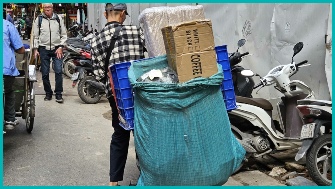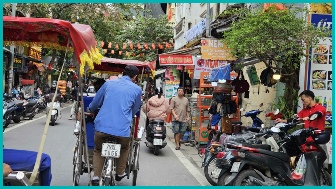 De lawaaiige en bedrijvige wijk is de oudste handelsbuurt van Hanoi.