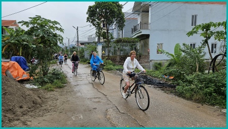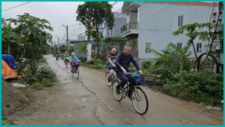 Aangekomen in Ninh Binh hebben wij, voordat wij naar het hotel gingen, eerst een fietstocht gemaakt van een kleine 10 km door de prachtige natuur van Ninh Binh. Tijdens de fietstocht hebben wij een klein regenbuitje gehad, maar dat kon de pret niet drukken.