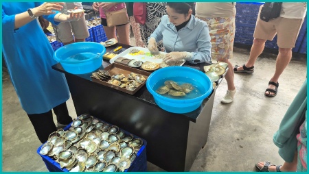 Tijdens de rondleiding werd uitgelegd en gedemonstreerd hoe parels worden gekweekt.