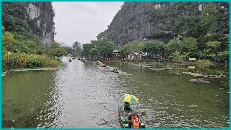 Om 10.30 uur kwamen wij weer aan wal, waar de bus op ons stond te wachten richting Ninh Binh.