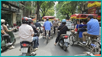 Kennismaking met het chaotische Hanoi met zijn 8 miljoen inwoners en 5 miljoen scooters.