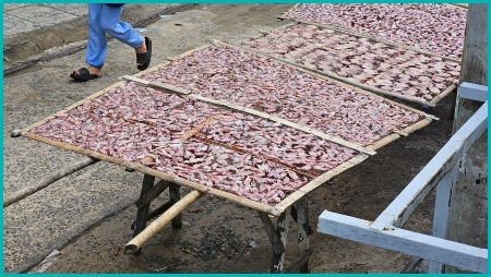 In Mui Ne staan overal fermentatievaten voor de bekende nuoc mam (vissaus), die gemaakt wordt met 1 kilo zout, 3 kilo ansjovis en water, waarna het mengsel minstens 1 jaar blijft staan.