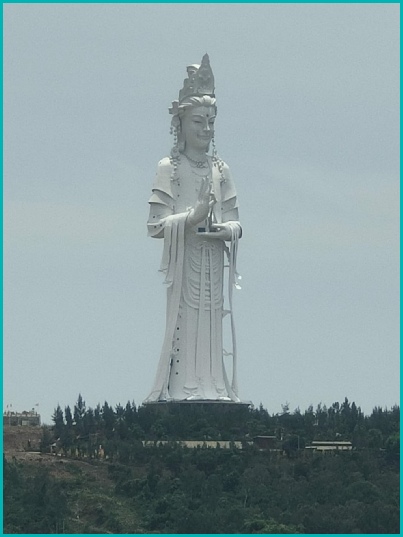 Onderweg naar Qui Nhon kwamen wij langs dit gigantische beeld, de 'Dame Boeddha' in Da Nang.