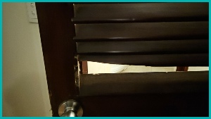 'S avonds, toen wij naar bed gingen, viel de badkamerdeur in het slot.