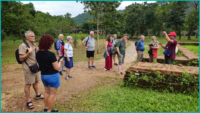 Wij zijn met een kleine groep (Bianca, Patrick, Juliette, Peter, Anneke, Gerrit, Elly, Clemens, Bertie, Michel, Jan en Din onze gids) de overblijfselen van My Son gaan bezoeken.